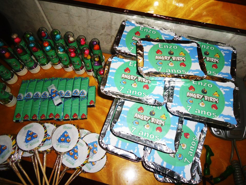 Vejam os personalizados que nossa leitora Giselle Moraes fez para a festinha do Enzo de 7 anos com o Tema Angry Birds!! Marmitinhas, Bis, Tubetes: