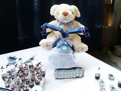Nossa Leitora Samira Alves Bandeira fez esse lindo Chá de Bebê para uma amiga com o Tema Ursinho Azul e Marrom (clique aqui para ver o kit!) !