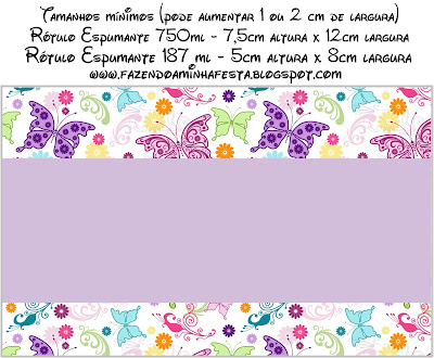 Rótulo Champagne, Vinho e Espumante Fundo de Borboletas Coloridas: