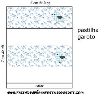 Rótulo Pirulito Mastigável Passarinho Provençal Azul: