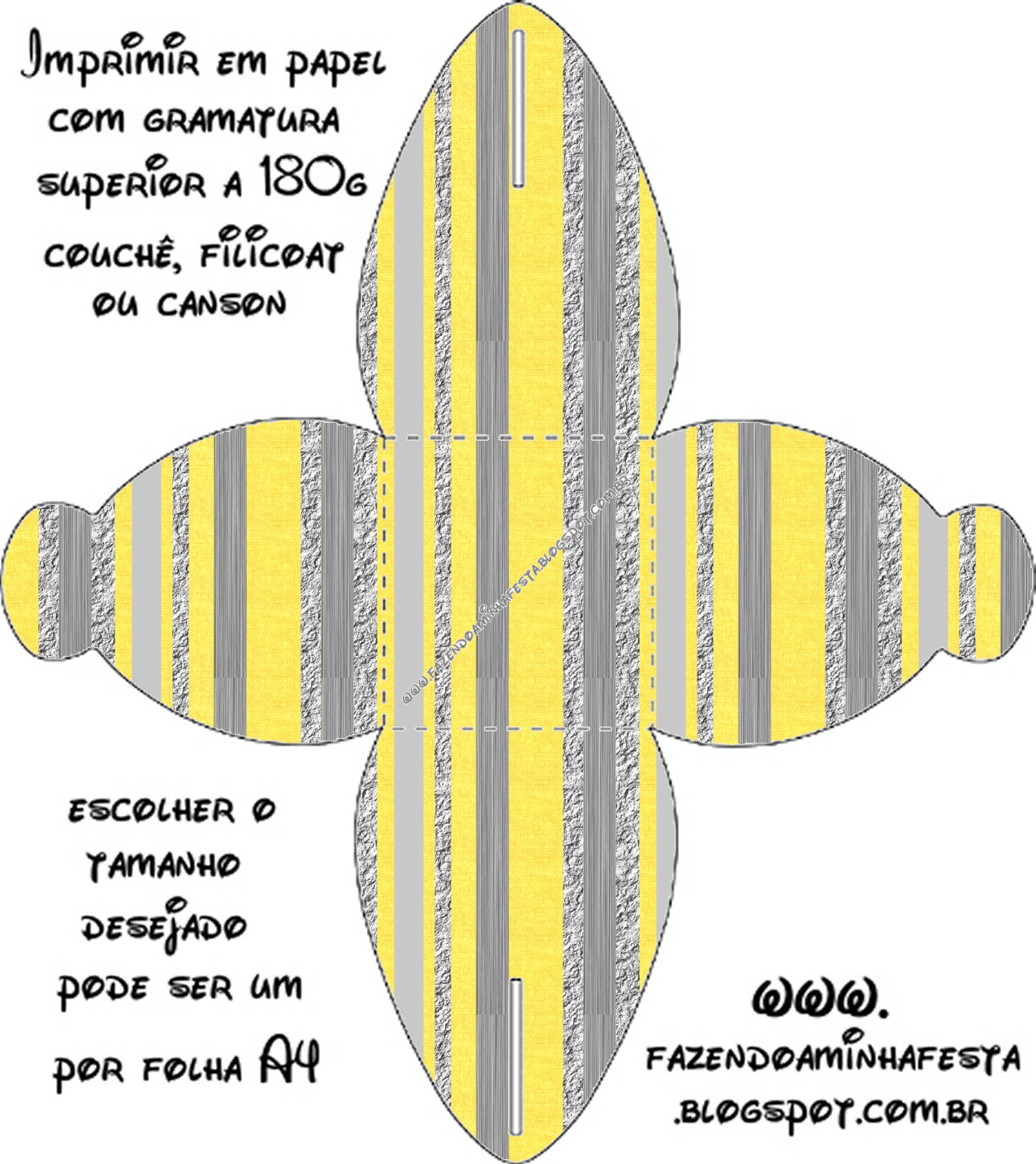 Caixa Pipoca Amarelo e Prata e Cinza: