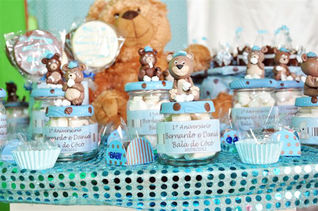 Nossa leitora Cristiane Silva de Assis fez essa linda festa para comemorar o primeiro ano dos Gêmeos Daniel e Bernardo usando o kit de Ursinho do nosso blog!!