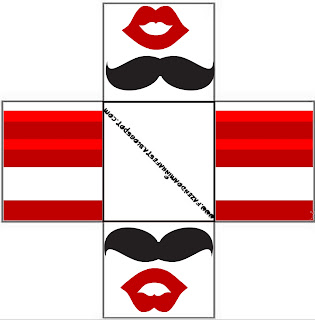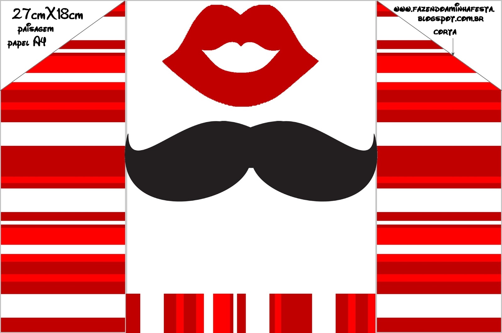 Convite Caixa Fundo Bigodes e Bocas Fundo Vermelho Preto e Branco: