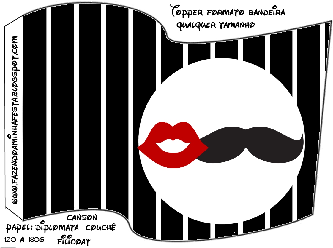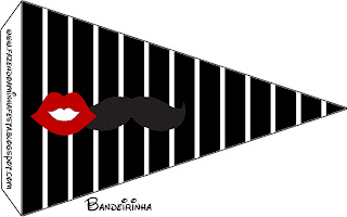 Bandeirinha Sanduiche Bigodes e Bocas Fundo Vermelho Preto e Branco: