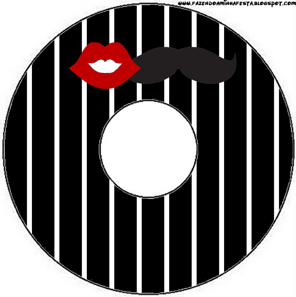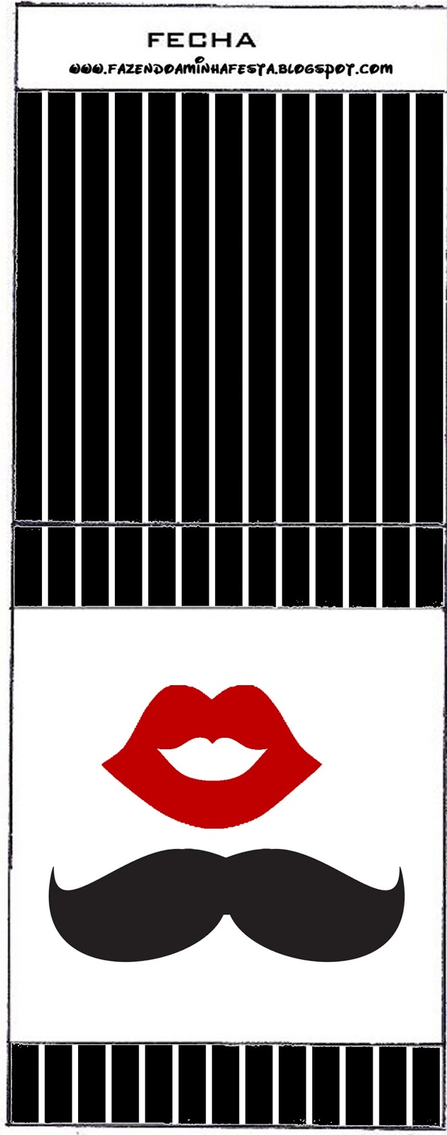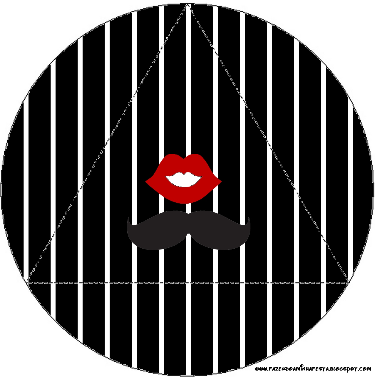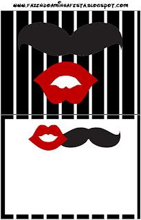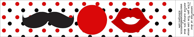 Bigodes e Bocas Fundo Vermelho Preto e Branco – Kit Completo com molduras para convites, rótulos para guloseimas, lembrancinhas e imagens!