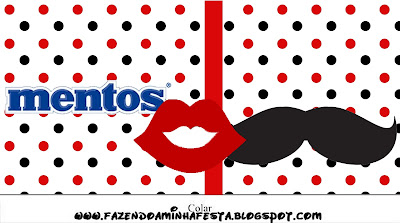 Rótulo Mentos Bigodes e Bocas Fundo Vermelho Preto e Branco: