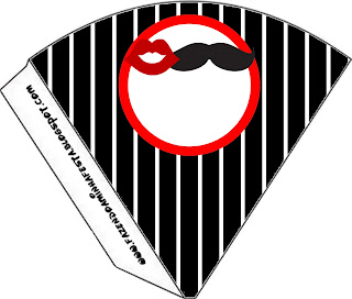 Forminhas Docinhos Bigodes e Bocas Fundo Vermelho Preto e Branco: