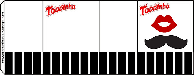 Rótulo Toddynho Bigodes e Bocas Fundo Vermelho Preto e Branco: