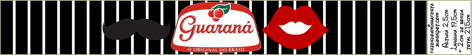 Rótulo Garrafinha de Água Bigodes e Bocas Fundo Vermelho Preto e Branco: