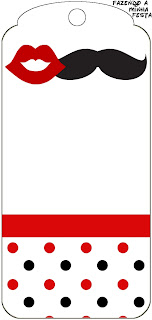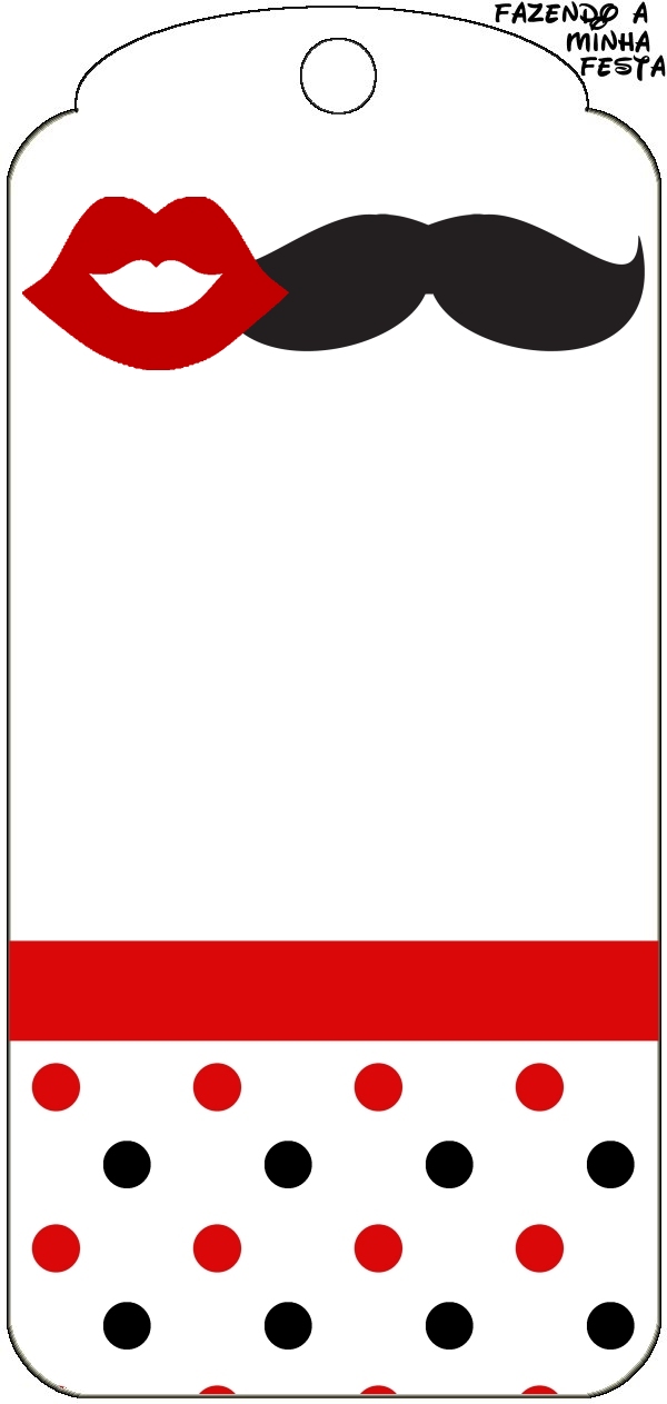 Tag Agradecimento Bigodes e Bocas Fundo Vermelho Preto e Branco: