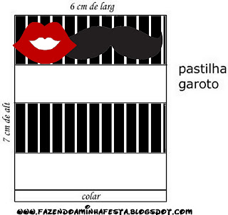 Rótulo Mini Pastilha Docile Bigodes e Bocas Fundo Vermelho Preto e Branco: