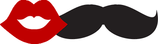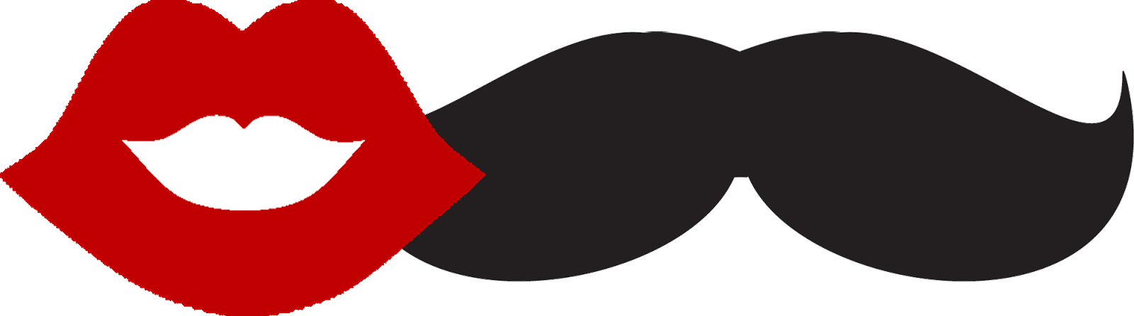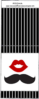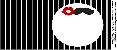 Rótulo Batom Garoto Bigodes e Bocas Fundo Vermelho Preto e Branco: