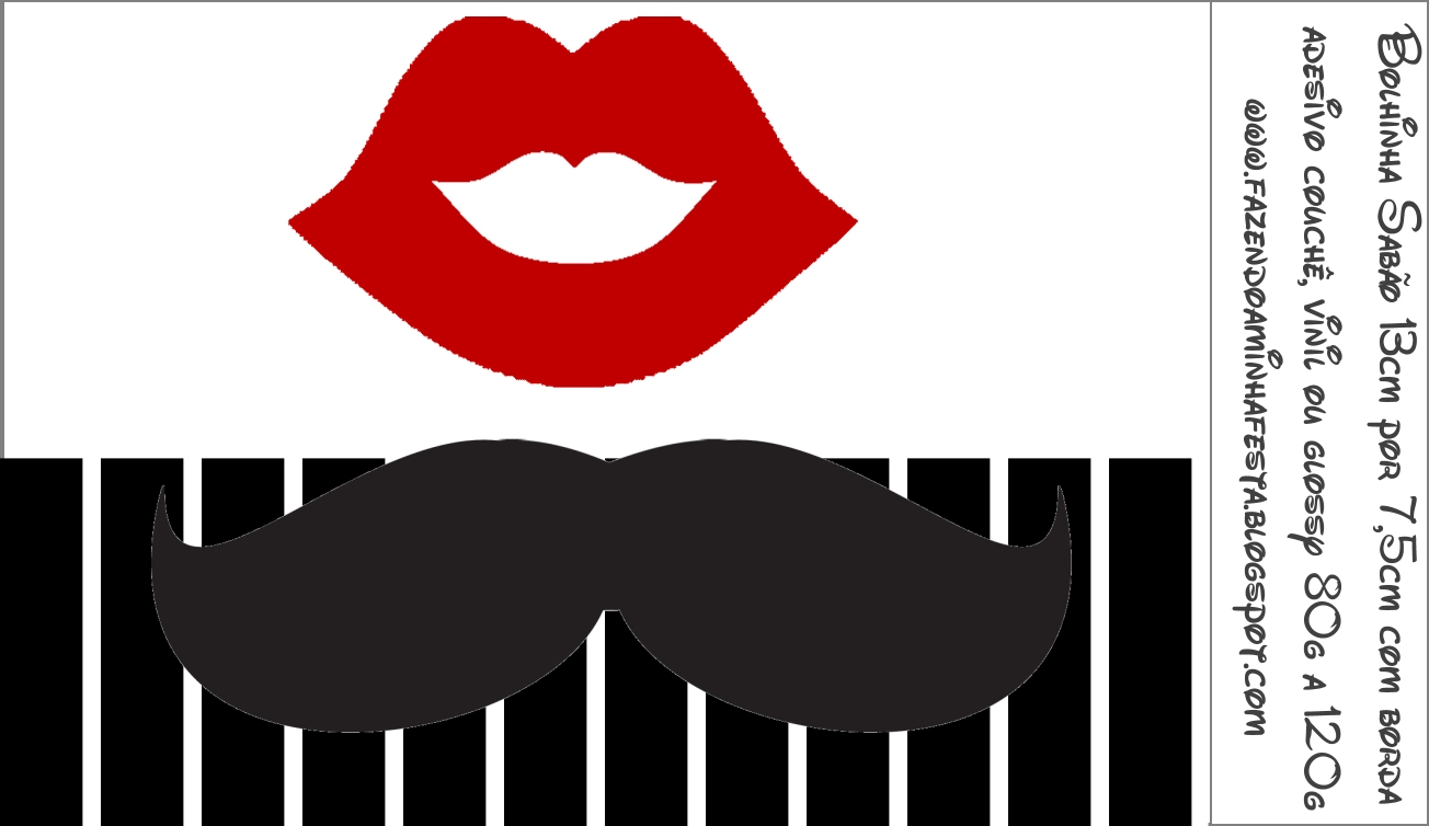 Rótulo Sabonete 90g Bigodes e Bocas Fundo Vermelho Preto e Branco: