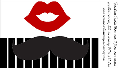 Rótulo Tubetes Bigodes e Bocas Fundo Vermelho Preto e Branco: