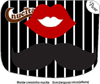 Rótulo Creminho Nucita Bigodes e Bocas Fundo Vermelho Preto e Branco: