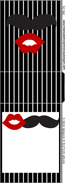 Rótulo Tic Tac Bigodes e Bocas Fundo Vermelho Preto e Branco: