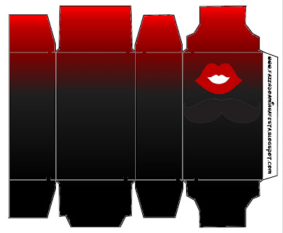 Caixa Convite Tampa Bigodes e Bocas Fundo Vermelho Preto e Branco: