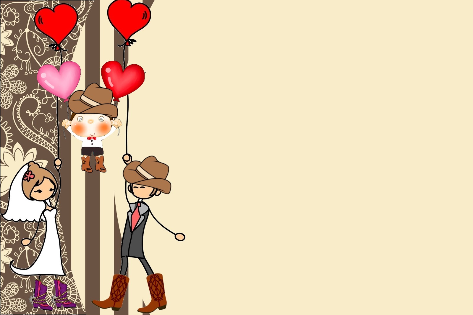 Moldura Convite e Cartão Casamento Cowboy com Filho: