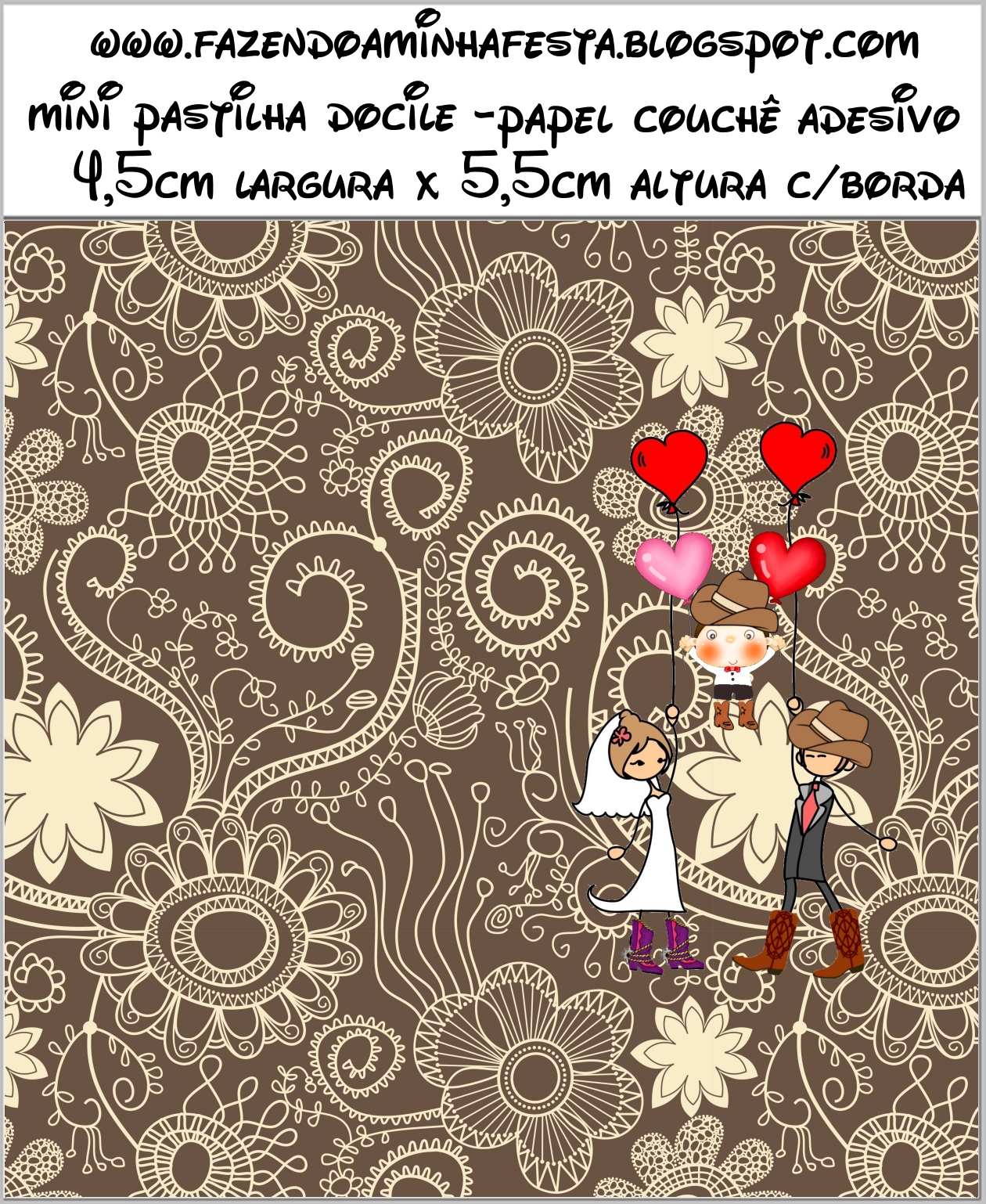 Rótulo Bala de Goma Gomets Casamento Cowboy com Filho: