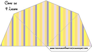 Cone Guloseimas 4 lados Listras Amarelo e Azul: