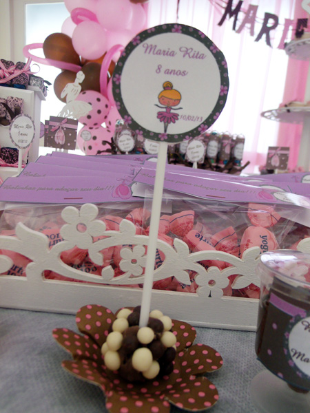 Nossa leitora Chris Coelho fez essa festinha linda com o Tema Bailarina Rosa e Marrom para sua filha Maria Rita de 8 anos! Ela usou o kit disponível no nosso blog que ficou perfeito!
