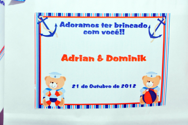 Adorei a festinha que nossa leitora Paula Beatriz Messnik fez para seus filhos Adrian e Dominik com Tema Marinheiro! Ficou uma graça!