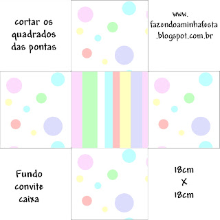 Convite Caixa Fundo Colorido Pastel Poá e Listras: