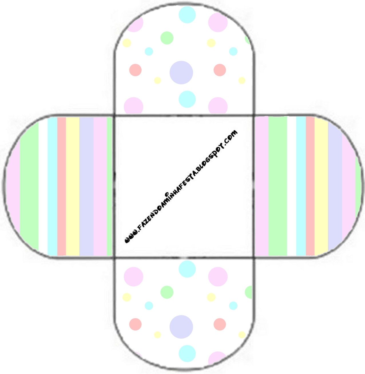Convite Caixa Fundo Colorido Pastel Poá e Listras: