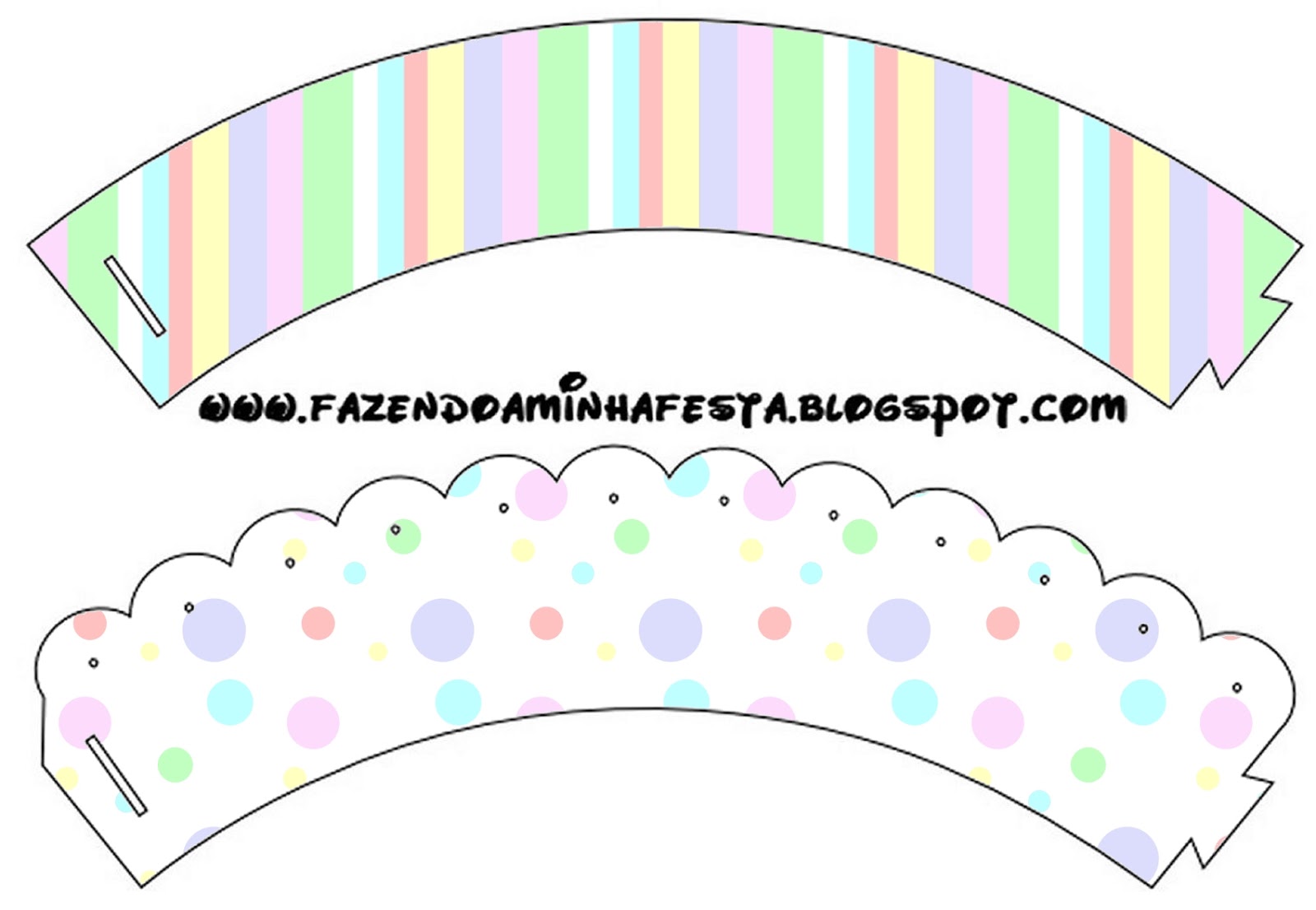 Saias Wrappers para Cupcakes Colorido Pastel Poá e Listras: