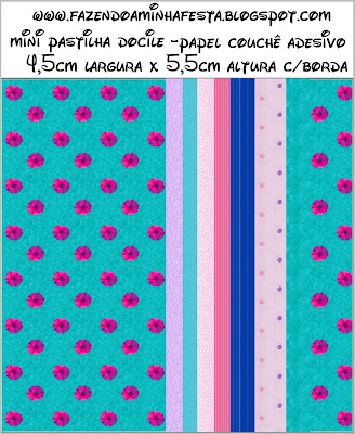 Rótulo Mini Pastilha Docile Floral Lilás Azul e Rosa: