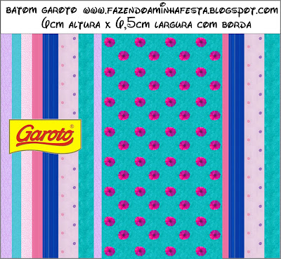 Rótulo Pastilha Garoto Floral Lilás Azul e Rosa: