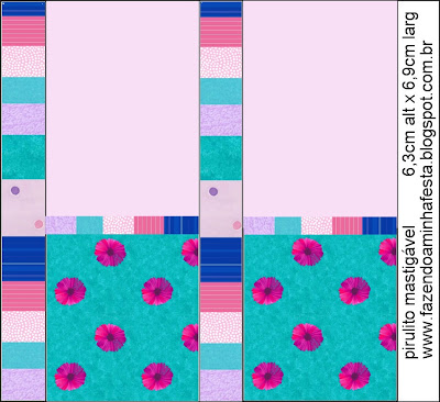 Rótulo Pirulito Mastigável Floral Lilás Azul e Rosa: