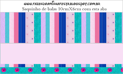 Rótulo Bala de Goma Gomets Floral Lilás Azul e Rosa: