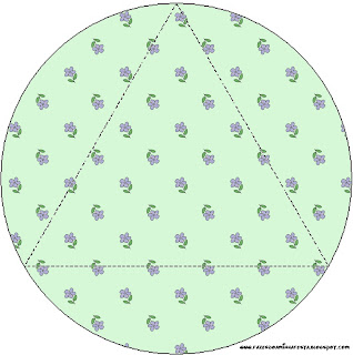 Convite Triangular Transpassado Verso Floral Lilás, Verde e Azul: