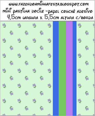 Rótulo Mini Pastilha Docile Floral Lilás, Verde e Azul: