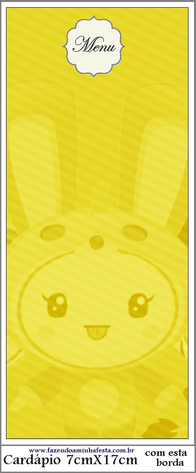 Rótulo Menu Fundo Amarelo Festa à Fantasia Infantil: