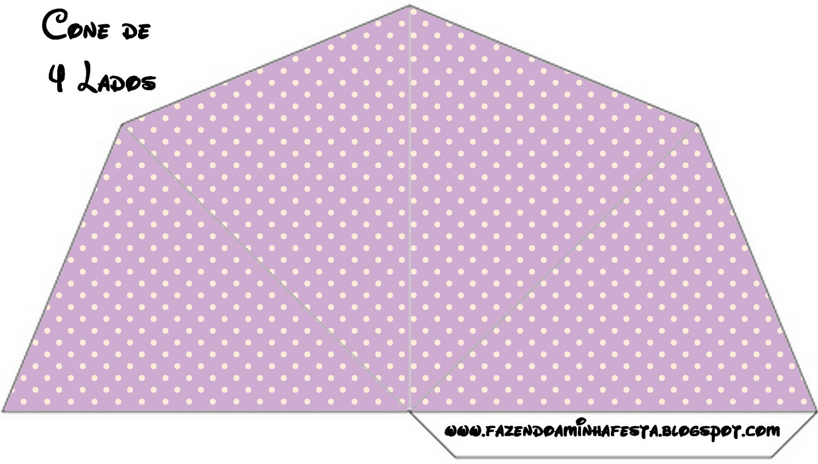 Cone Guloseimas 4 lados Poá Roxo e Lilás:
