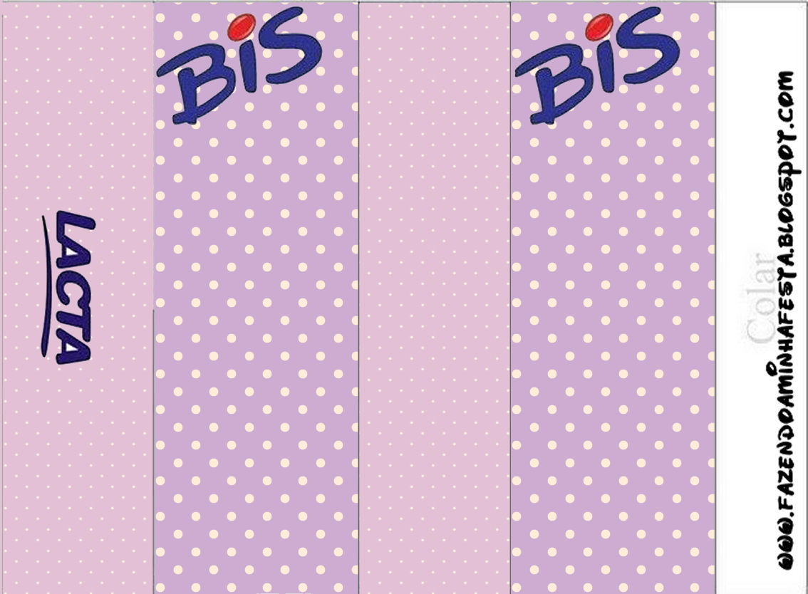 Rótulo Bis com Logo Lacta Poá Roxo e Lilás: