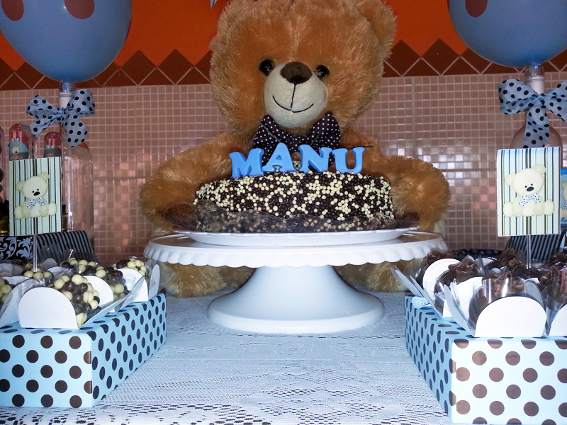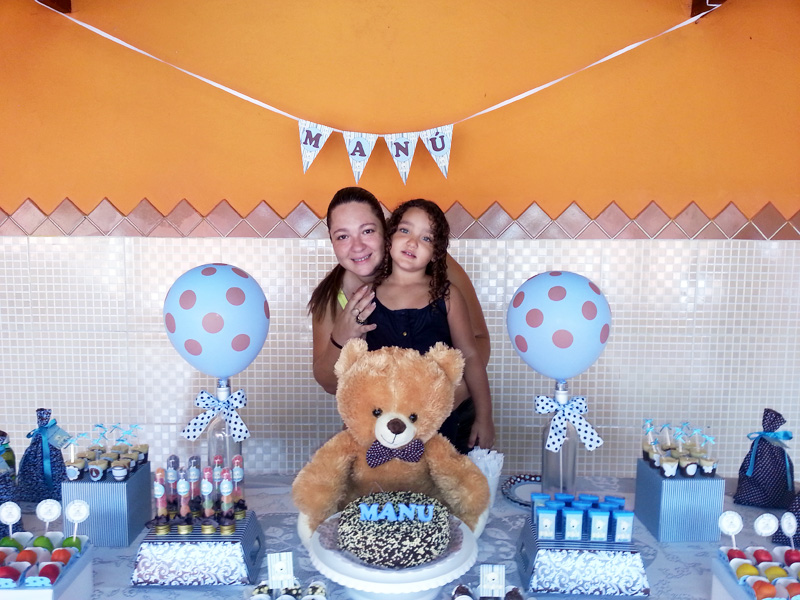 Adorei a festinha que nossa leitora Roberta Sanches fez para sua filha com o Tema Ursinho Azul e Marrom, sua filha adora azul e quando pediu esse tema nossa leitora ficou um pouco perdida, mas ai achou o nosso kit que é super fofo e pode ser usando para meninas também e a festa ficou linda!