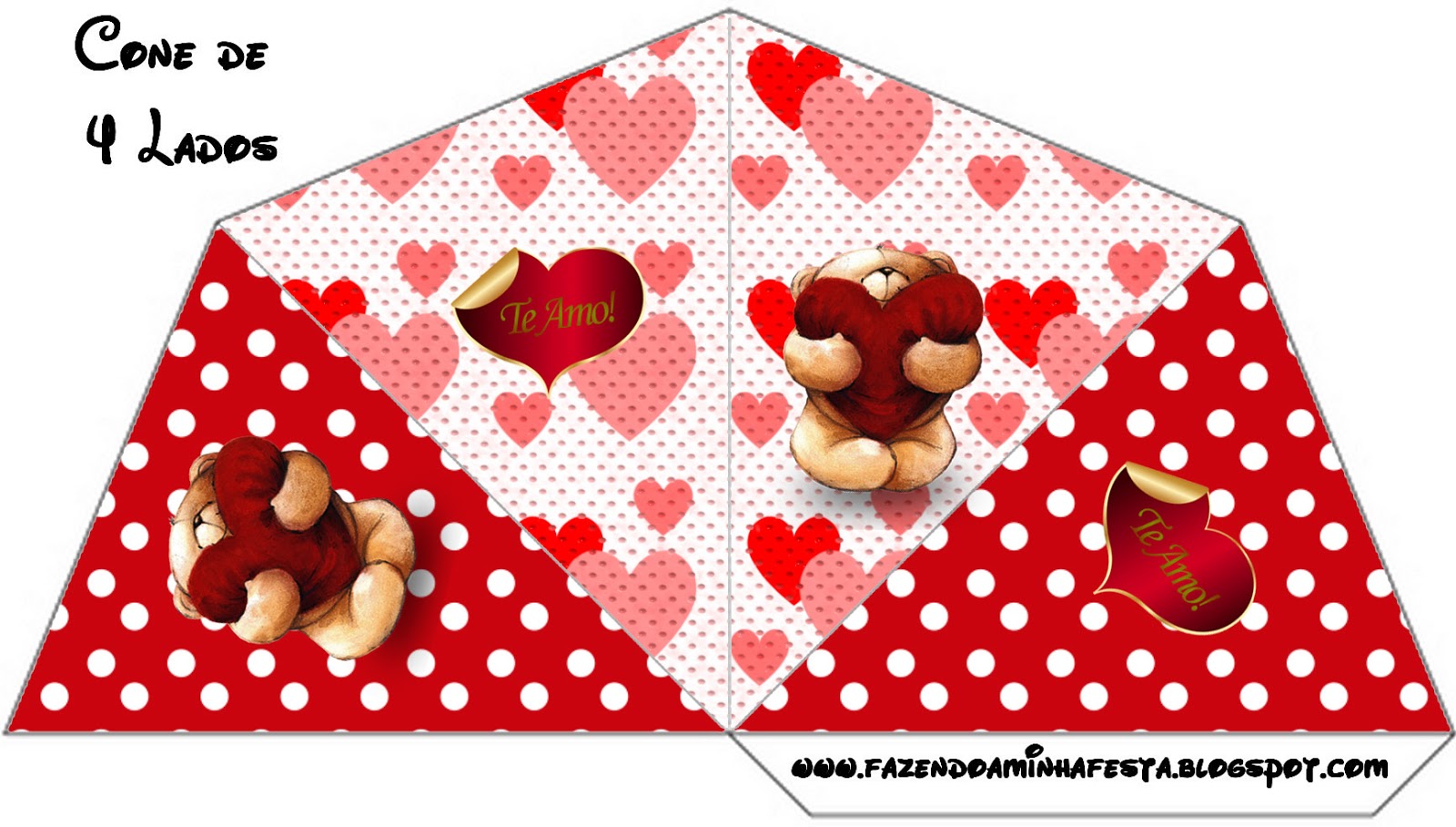 Cone Guloseimas 4 lados Dia dos Namorados: