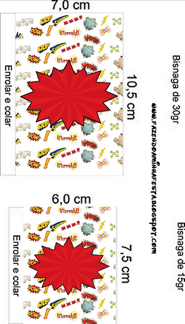 Rótulo Bala de Goma Gomets Fundo Balões Super Heróis:
