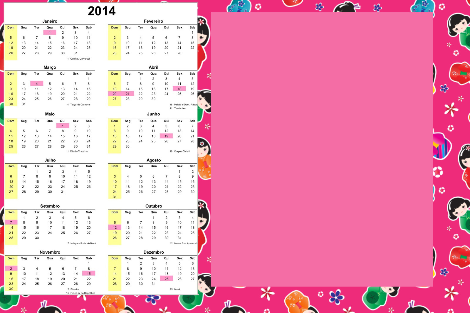 Convite Calendário 2014 Fundo Matrioskas: