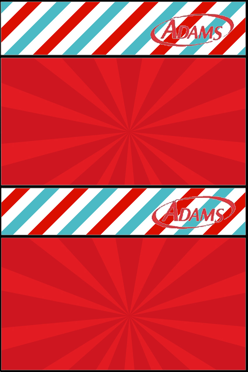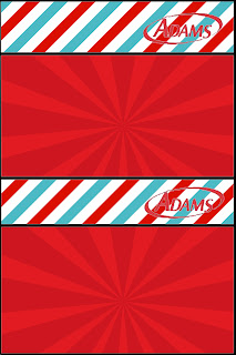 Rótulo Chiclets Adams Listrado Vermelho e Azul: