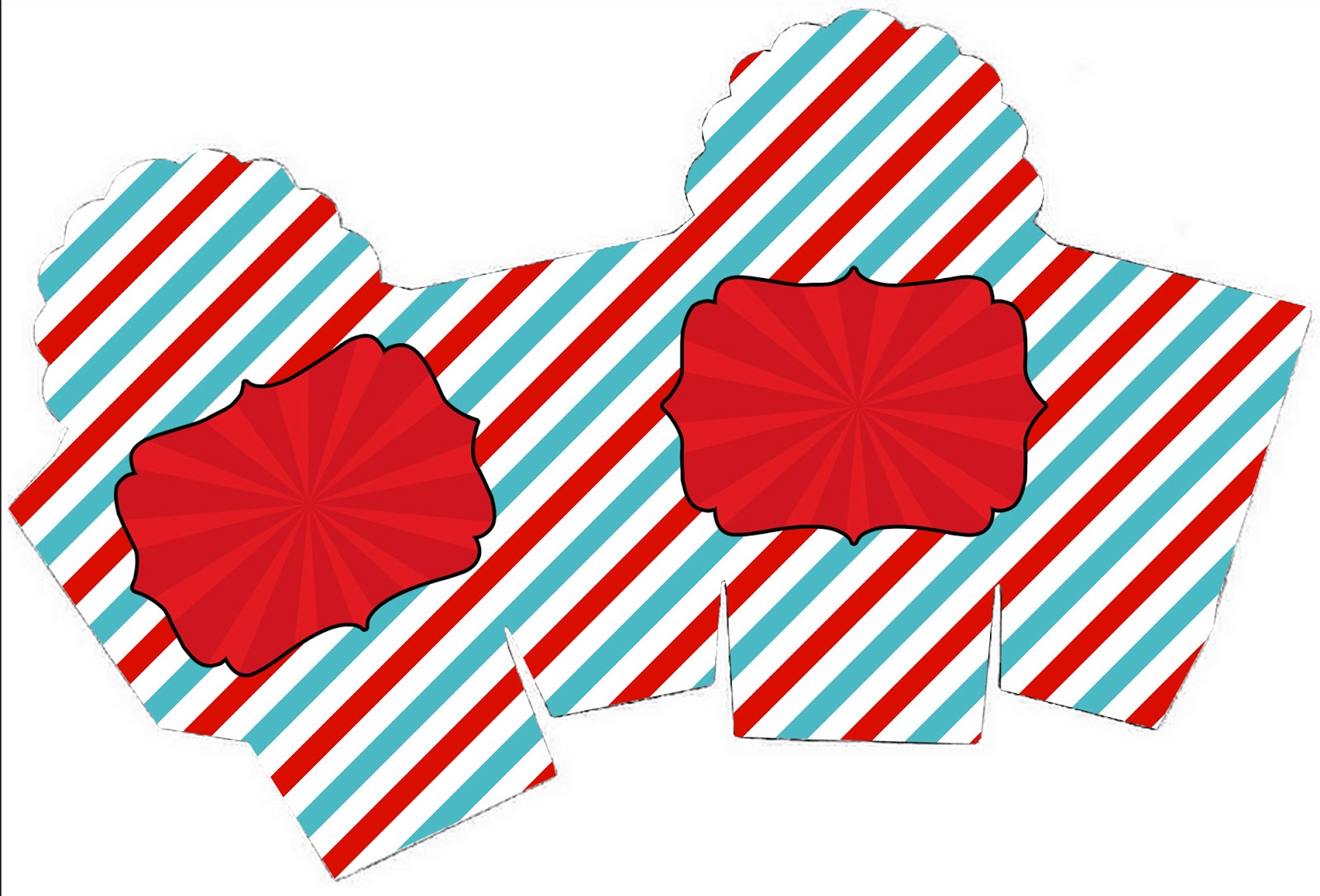Saias Wrappers para Cupcakes Listrado Vermelho e Azul: