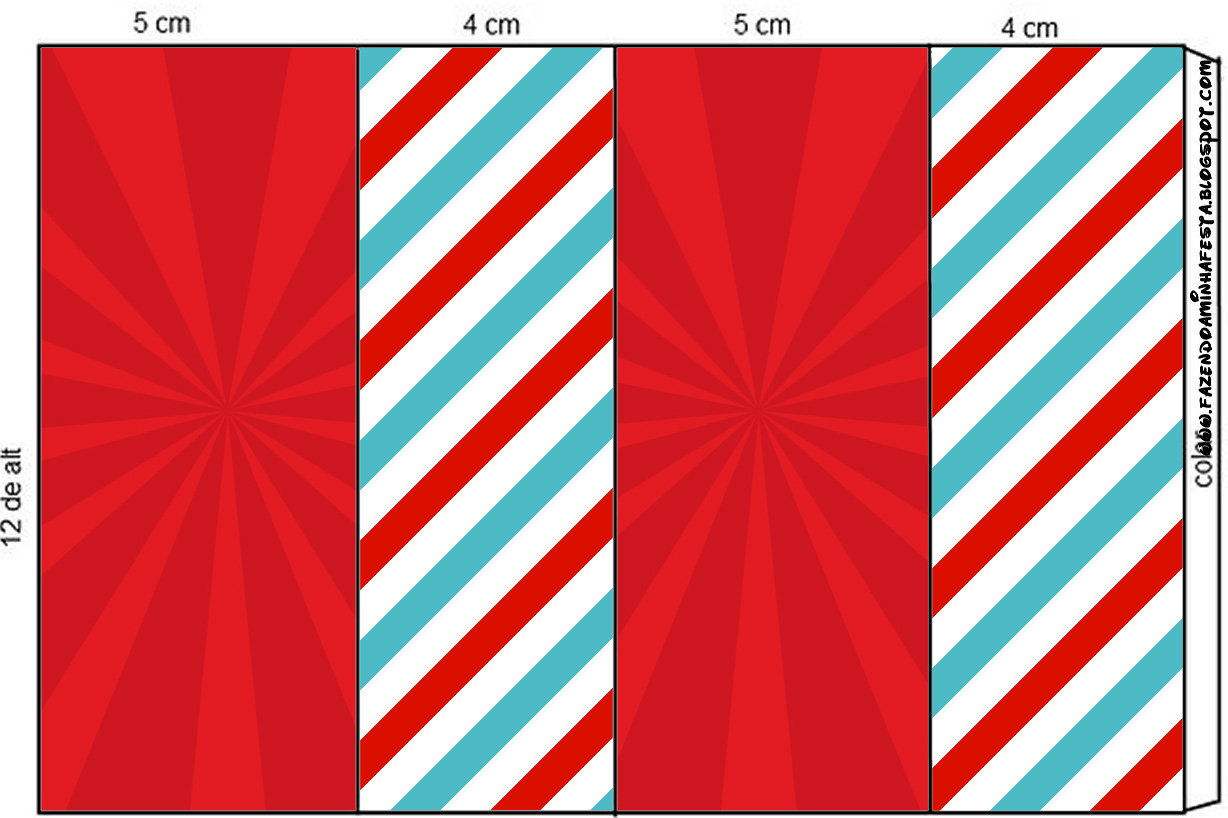 Convite Caixa Fundo Listrado Vermelho e Azul: