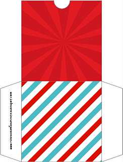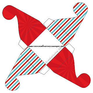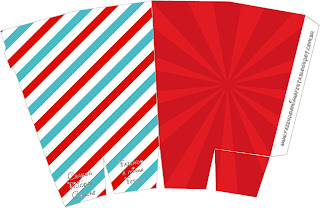 Convite Caixa Tampa Listrado Vermelho e Azul: