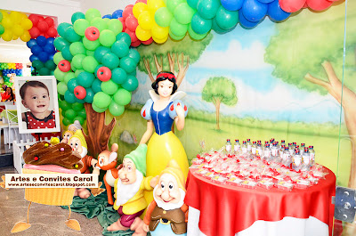 Vejam que perfeita a festa de nossa leitora Carol Paz do blog Artes e Convites Carol (clique aqui para conhecer!) com o Tema Branca de Neve!!