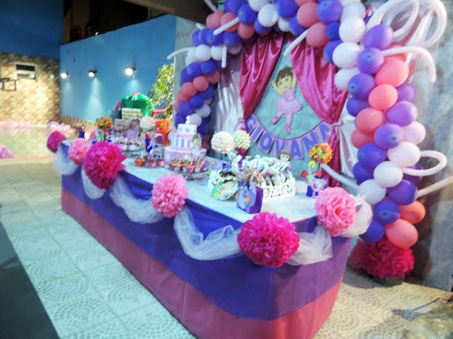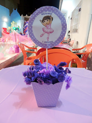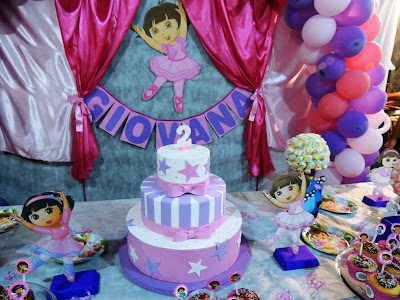 Amei a festinha que nossa leitora Regiane Tavares fez com o Tema Dora Bailarina para sua afilhada Giovana.