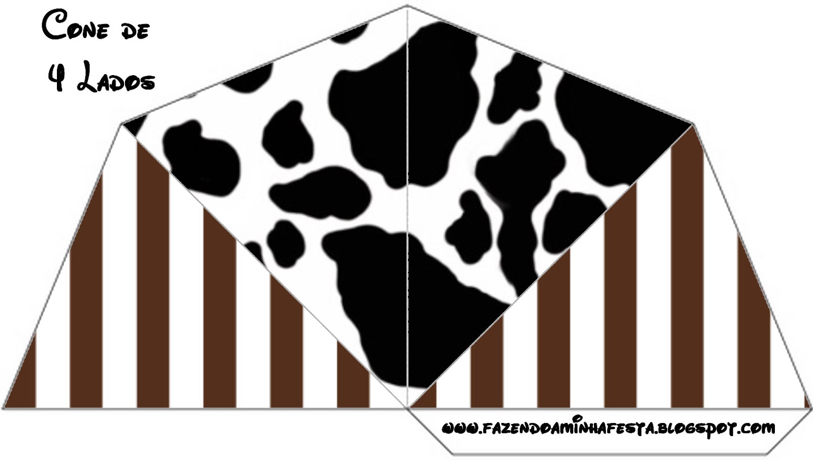 Cone Guloseimas 4 lados Fundo Vaquinha e Listras Marrom: