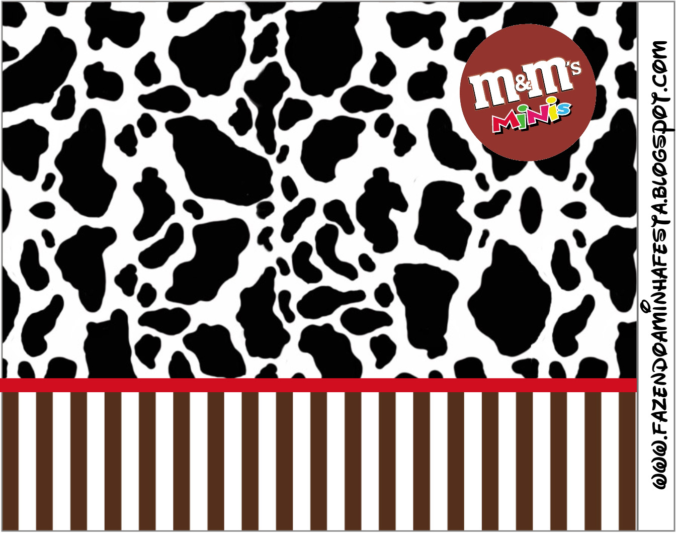 Rótulo Mini M&M Fundo Vaquinha e Listras Marrom: